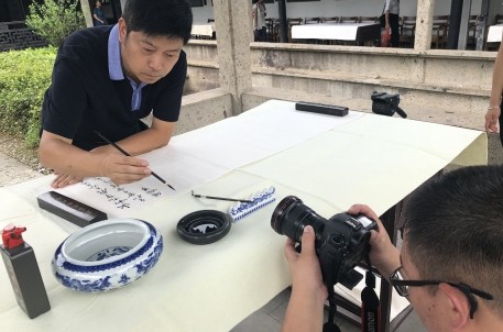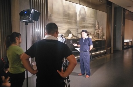 為了深度融入當(dāng)?shù)匚幕?/span>欄目組以“蘭亭書圣——王羲之”為切入點(diǎn),在了解蘭亭故事的基礎(chǔ)上,分別對各點(diǎn)進(jìn)行了細(xì)致的拍攝。除了在曲水流觴景點(diǎn)重現(xiàn)東晉永和九年王羲之等文人雅士飲酒賦詩的雅集場景外,還專門邀請了蘭亭書法博物館副館長喻革良講述作為蘭亭守護(hù)人,近三十年來親歷的蘭亭發(fā)展與變化。采訪最后,喻主任感慨萬分,在提及王羲之的啟蒙老師衛(wèi)夫人對王羲之的書法影響時(shí),他說到:“雖已過去1600多年,但衛(wèi)夫人當(dāng)時(shí)對王羲之‘點(diǎn)像高山墜石,橫若千里陣云,豎如萬歲枯藤’的書法理念一直對我非常受用,影響很大”。