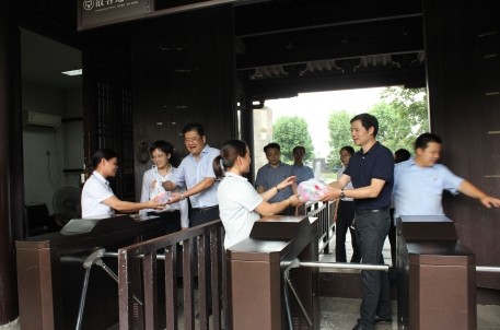 炎炎夏日,持續(xù)高溫,給奮戰(zhàn)在旅游一線崗位上的員工帶來(lái)了嚴(yán)峻考驗(yàn)。8月6日下午,紹興市文化旅游集團(tuán)總經(jīng)理胡華良、副總經(jīng)理沈偉慶等一行冒著酷暑專程來(lái)到東湖景區(qū)看望慰問(wèn)一線員工,給員工們帶來(lái)一份份“清涼”的問(wèn)候。