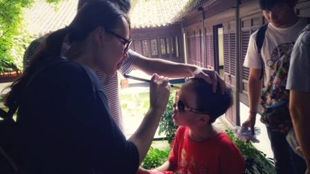 文創(chuàng)店另一角,許多小朋友團(tuán)團(tuán)圍在一起,這是在做什么?
