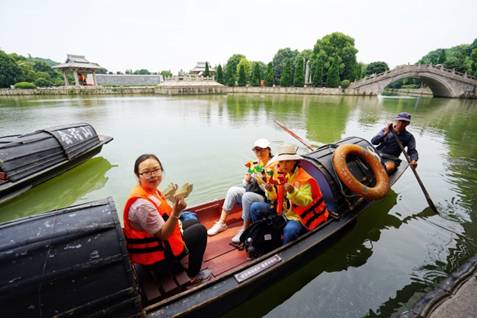 端午期間,乘坐會稽烏篷的游客,在欣賞會稽山水的美景同時,曬出自己動手做的“龍舟”,體驗獨特、新穎的端午民俗風(fēng)情。