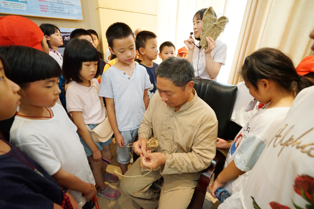 老師傅現(xiàn)場(chǎng)手作草鞋,在一絲一縷的編織中,感受大禹當(dāng)年著草履治水的艱苦奮斗精神。