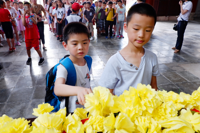 祭師著玄衣、披赤裳,帶大家置身于一場(chǎng)傳統(tǒng)的祭禹儀式中。小朋友們井然有序地列隊(duì)獻(xiàn)花,表達(dá)對(duì)華夏始祖大禹的深切緬懷。