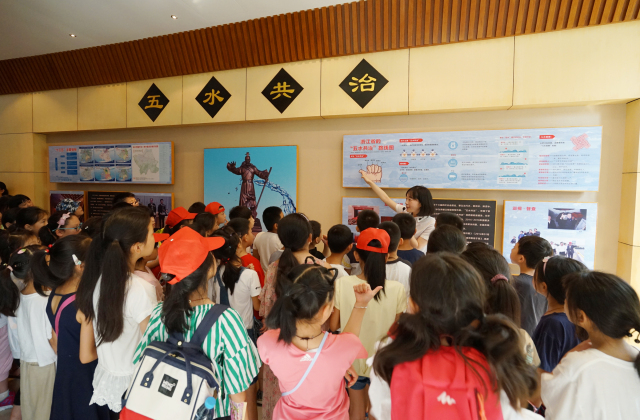 講解員姐姐正深入淺出地闡述五水共治的含義,小朋友們積極參與互動(dòng)問(wèn)答。