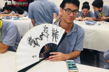 大陸、臺(tái)灣一衣帶水、血脈相連,兩岸同胞同宗同族有著相同的傳統(tǒng)文化背景,而書法,也是許多臺(tái)灣學(xué)生自小學(xué)以來(lái)就開始研習(xí)的傳統(tǒng)國(guó)學(xué)課程,蘭亭,作為祖國(guó)書法文化的發(fā)源圣地,必將承擔(dān)起書法文化弘揚(yáng)及傳承的教育使命。本次活動(dòng),景區(qū)特邀浙江省工藝美術(shù)大師、浙江省書法家協(xié)會(huì)會(huì)員王仲章老師,結(jié)合景區(qū)特色書法研學(xué)活動(dòng)項(xiàng)目扇面寫字,針對(duì)扇面書法發(fā)展簡(jiǎn)史、扇面寫字布局、扇面寫字技巧運(yùn)用、扇面裝裱等為同學(xué)們開講了一堂專業(yè)而生動(dòng)的書法課。同學(xué)們紛紛在現(xiàn)場(chǎng)揮毫潑墨,寫下以“龍脈相傳 青春中華”為主題的扇面作品,將本次臺(tái)灣大學(xué)生夏令營(yíng)在蘭亭的活動(dòng)推向了高潮。