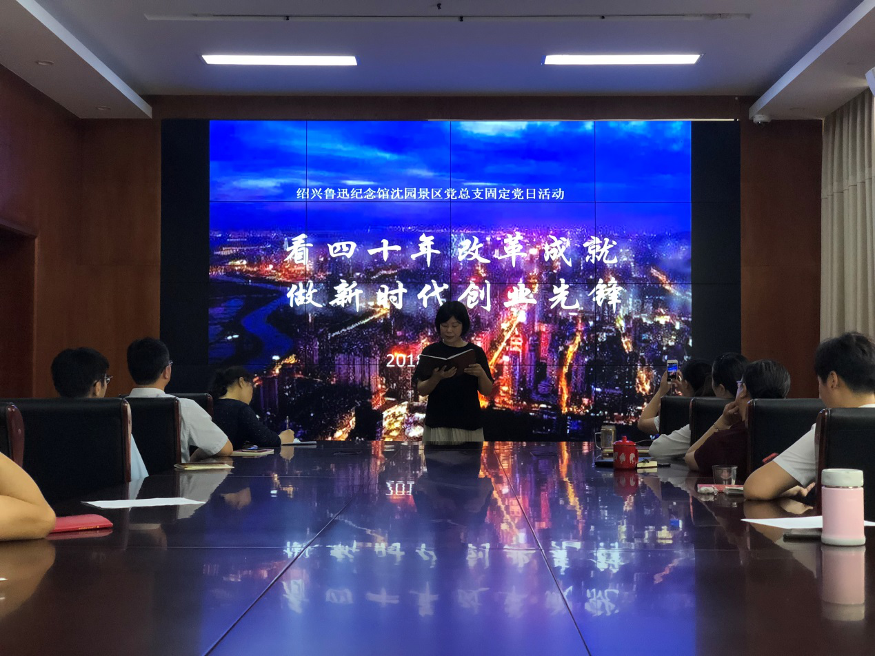 5月18日上午,魯迅紀念館沈園景區(qū)黨總支組織全體黨員開展 “看四十年改革成就,做新時代創(chuàng)業(yè)先鋒”為主題的固定黨日活動。通過觀看訪談節(jié)目《改革開放四十年——中國與世界》,宣傳弘揚改革開放偉大成就,激發(fā)廣大黨員干部身為“國企人”的自豪感、使命感和責任感,增加黨員干部的凝聚力和開拓創(chuàng)新力。