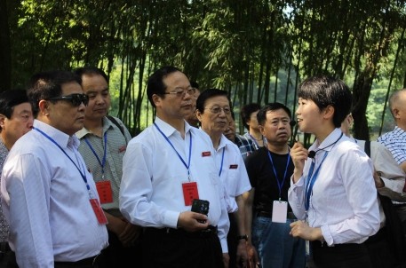 上午八時許,嘉賓們一行首先在景區(qū)講解員的引領(lǐng)下參觀景區(qū),并在曲水流觴處,著古裝、展豪情,效仿古人飲酒賦詩,現(xiàn)場書藝交流。