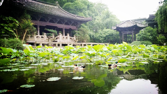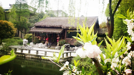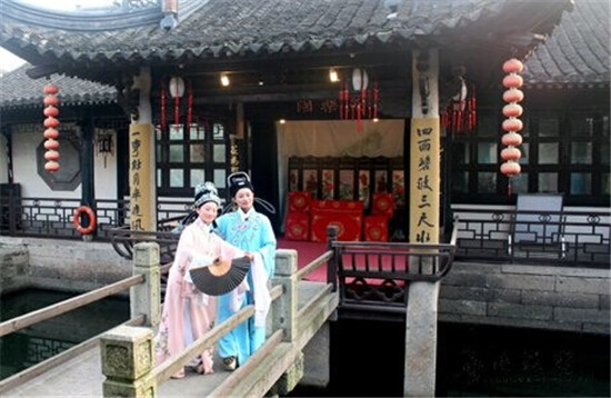 沈家園內(nèi),綠樹掩映,幽靜避世,游客可以坐于宋式院落雙桂堂中,一邊品茗,一邊欣賞越劇愛情名段,陶醉在沈園美景中。