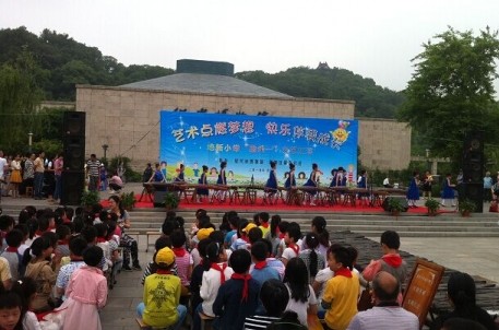 5月20號上午,為迎接兒童節(jié)的到來。由培新小學主辦,紹興博物館、越城區(qū)偏直社區(qū)協(xié)辦的“迎六一”文藝匯演在越王城廣場上舉行。每位學生手拿凳子,佩戴紅領(lǐng)巾在老師們的帶領(lǐng)下排隊進入廣場,(許多同學的父母也是陪著自己的孩子來到廣場)。