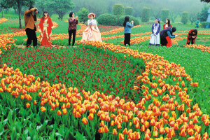 2015紹興會稽山朝花季——宛委山櫻花節(jié)和會稽山郁金香節(jié)今天開園迎客。許多市民一早就趕來賞花踏春,享受美妙的愜意時光。大家在“花花世界”里穿行,在花的世界里放飛七彩心情。市民張小姐開心地告訴記者,今年的郁金香布置和去年又不一樣了,成片的橘紅色好有新鮮感。據(jù)了解,越城區(qū)、柯橋區(qū)、上虞區(qū)的市民賞花可享受20元一張的優(yōu)惠門票。(石皎月 攝)