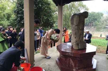 天溪會(huì)是日本著名的民間書(shū)法團(tuán)體,創(chuàng)立于1970年,南鶴溪女士市場(chǎng)會(huì)帶領(lǐng)會(huì)員朋友來(lái)中國(guó)參加拜謁書(shū)圣活動(dòng),這似乎已經(jīng)成了“天溪會(huì)”的傳統(tǒng)。她對(duì)景區(qū)工作人員說(shuō):“就像你們會(huì)去祭拜自己的親人,我們也希望親自來(lái)書(shū)圣墓前參拜?!彼€看著景區(qū)內(nèi)含苞待放的櫻花,說(shuō)到:“2017年她們還會(huì)再來(lái),屆時(shí)還會(huì)舉行隆重的紀(jì)念活動(dòng)。相信,我們的交流與合作也會(huì)像櫻花一般,長(zhǎng)久,動(dòng)人?!?/p>