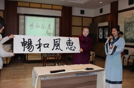 考核分面試和現(xiàn)場(chǎng)考核兩部分,考試內(nèi)容均以提升實(shí)際工作實(shí)效而設(shè)。筆試部分內(nèi)容為各景區(qū)基本概況及特色活動(dòng)信息,便于演藝組人員在平時(shí)工作中能準(zhǔn)確回答游客提出的旅游交通、門票價(jià)格和著名詩詞等方面咨詢?,F(xiàn)場(chǎng)考核部分由集體舞蹈展示、互動(dòng)環(huán)節(jié)、個(gè)人才藝和詩詞吟誦四個(gè)部分組成。在欣賞完柔美優(yōu)雅的修禊舞蹈后,以“蘭文化”、“酒文化”、“橋文化”等為主要內(nèi)容的互動(dòng)環(huán)節(jié)得帶了評(píng)委們的參與熱情。這些即熟悉又陌生的文化推廣,不僅融合了蘭亭的雅致,同時(shí)還迎合了游客的心理,得到了知識(shí)的熏陶也體驗(yàn)了歡愉的樂趣。在才藝展示環(huán)節(jié)中,一書“惠風(fēng)和暢”,一吟《蘭亭集序》,一曲《蘭亭故事》更是展示了蘭亭景區(qū)員工秀外慧中,熱愛工作的獨(dú)特魅力。