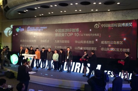 2014年12月20日,第七屆中國(溫州)網(wǎng)絡(luò)旅游節(jié)暨全國智慧旅游應(yīng)用大會在浙江溫州隆重舉行!本屆網(wǎng)絡(luò)旅游節(jié)以“智慧旅游 應(yīng)用無限”為主題,由國家旅游局、中國互聯(lián)網(wǎng)協(xié)會為指導(dǎo)單位;由浙江省旅游局、溫州市人民政府共同主辦;溫州市旅游局、浙江省旅游信息中心共同協(xié)辦。來自全國從事旅游信息化工作的政府領(lǐng)導(dǎo)、行業(yè)專家、業(yè)界精英、智慧旅游試點(diǎn)城市代表和多家權(quán)威主流媒體、旅游新媒體技術(shù)供應(yīng)商等逾400余位嘉賓參與本次盛會。 大會開幕儀式由浙江省旅游局副局長許澎主持。溫州市人民政府副市長胡綱高、浙江省旅游局黨組書記王文娟、中國互聯(lián)網(wǎng)協(xié)會副秘書長石現(xiàn)升分別致歡迎辭,預(yù)祝大會圓滿成功。在開幕式上,各位領(lǐng)導(dǎo)與嘉賓代表大會組委會對獲得2014年度中國旅游好微博、中國旅游好微信、浙江旅游好微博及浙江旅游好微信等四個(gè)獎(jiǎng)項(xiàng)的獲獎(jiǎng)單位進(jìn)行頒獎(jiǎng)。會稽山景區(qū)官方微博榮獲2014年度中國旅游好微博(景區(qū)類)。