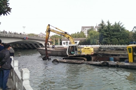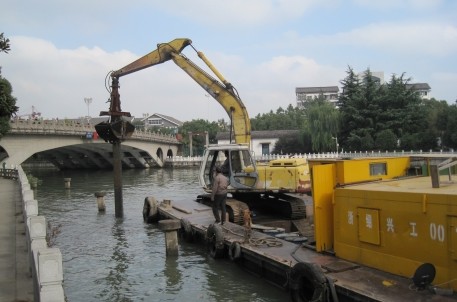 10月23日,環(huán)城河公司與市交通局、市水利局等幾個(gè)相關(guān)部門(mén)相約會(huì)商,專門(mén)就此事召開(kāi)協(xié)調(diào)會(huì)。在協(xié)調(diào)會(huì)上,幾個(gè)部門(mén)負(fù)責(zé)人達(dá)成共識(shí),大家均表示將盡快把這批水泥柱子拔除。在交通、水利部門(mén)的評(píng)估工作完成之后,我公司負(fù)責(zé)具體實(shí)施并落實(shí)相關(guān)資金。我公司確定了市內(nèi)一家專業(yè)公司負(fù)責(zé)施工作業(yè),10月28日上午8點(diǎn)左右,施工隊(duì)伍來(lái)到現(xiàn)場(chǎng),其中一只船裝有拔除水泥柱的大型抓機(jī),另一只船安放運(yùn)輸被拔出來(lái)的水泥柱子。8點(diǎn)50分,第一根水泥樁被挖機(jī)穩(wěn)穩(wěn)地拔出水面,至中午12點(diǎn)多全部拆除完畢。這些被拔除的水泥柱長(zhǎng)度大概5.5米左右,其中水下2米多。