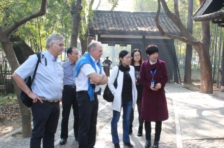 往年的小雪節(jié)氣,天氣已近寒冷,而今年今日卻是陽光明媚,愜意無比。11月22日,國際劃聯(lián)馬拉松委員會主席約翰波 克羅博格和技術(shù)官員魯格斯彼特 黑塞拉一行饒有興致的參觀了書法圣地——蘭亭。