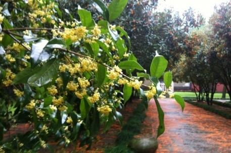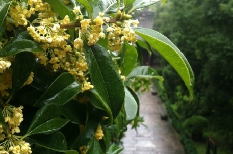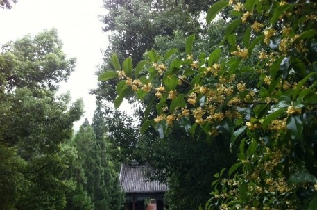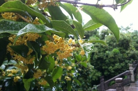 走進(jìn)禹廟,一股桂花的清香撲鼻而來,沁人心脾。我閉上眼,深呼吸,色香味一齊襲來,一種如臨仙境的意境。我癡癡地陶醉于此,久久不愿睜開眼睛。它的清香,隨了雨,隨了風(fēng),縹緲悠遠(yuǎn)……