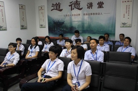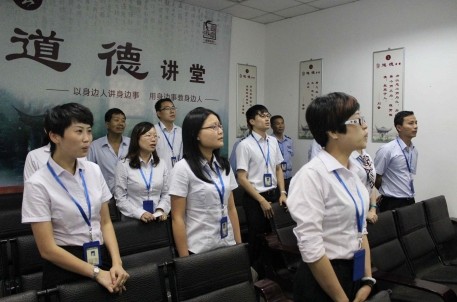 課上還結(jié)合誦經(jīng)典、唱勵志歌曲、向“德”字鞠躬等多項內(nèi)容為廣大員工奉獻(xiàn)了一出有觀點(diǎn),有內(nèi)容,有回味,極具教育意義的視覺大餐。