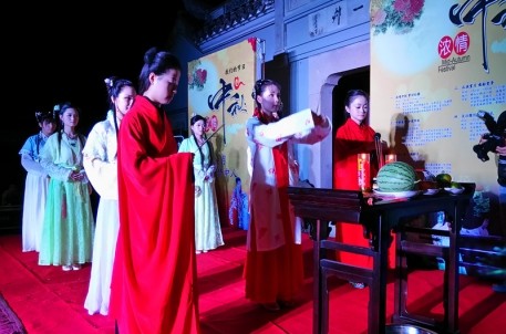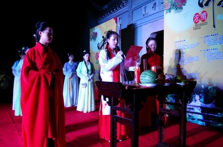 9月6日晚,環(huán)城河畔賓客如云,水城公司特邀古風(fēng)攝影的三十多位漢服愛好者,齊聚稽山公園又一村舉行中秋祭月儀式,慶祝佳節(jié),祈福還愿。