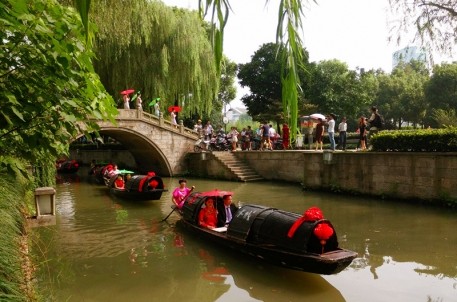 中秋小長假第一天,城市廣場烏篷船碼頭,人頭攢動。6艘裝飾一新的烏篷船,整齊地??吭诖a頭。上午9時,鑼鼓聲響起,6位美船娘,載著新人及親朋好友開始水上迎親巡游。身著旗袍、打著油紙傘的水鄉(xiāng)姑娘,走上了龍門橋,為游客們展現(xiàn)粉黛旗袍秀。水鄉(xiāng)、烏篷、新人、佳麗,構(gòu)成了一幅絕美的水鄉(xiāng)風(fēng)情畫卷。攝影愛好者們,不停地按著快門,記錄這美麗的瞬間。其中有位是來自中國旅游報的梅記者,他為了拍攝烏篷船水上婚禮,專程從杭州趕來。在接受紹興記者采訪時,他興奮地說:“今天能夠看到烏篷船婚禮秀,我真的很激動,我一定要把烏篷船的文化傳播出去,讓全世界的人民都知道,都到紹興來感受烏篷船的風(fēng)采?!?br />