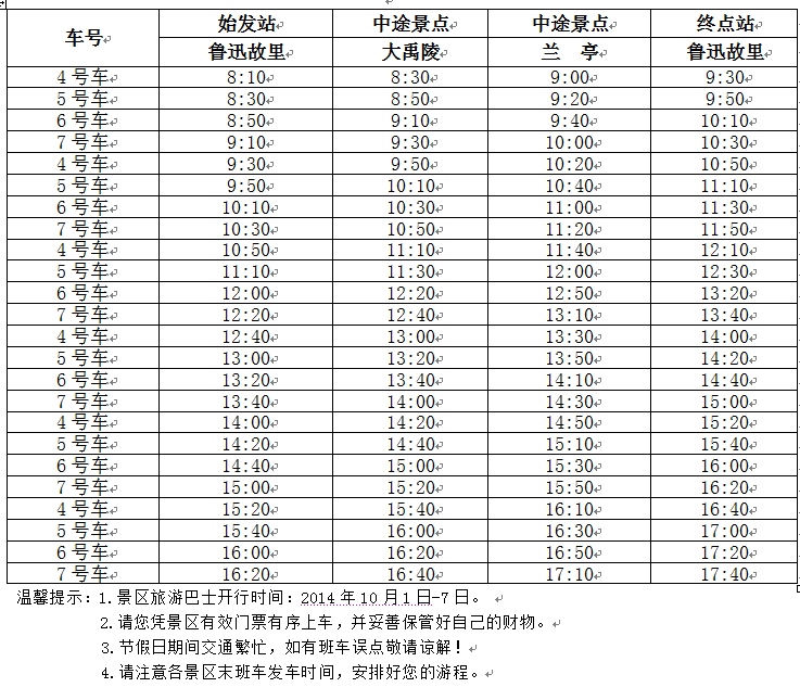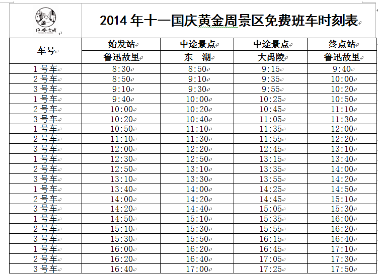 2014年十一國慶黃金周景區(qū)免費(fèi)班車時刻表