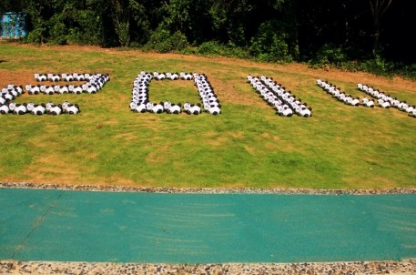 為了讓千只“大熊貓”憨味更濃,會(huì)稽山景區(qū)在布置這些熊貓時(shí),盡可能讓“熊貓寶寶”萌態(tài)百出。趴著、躺著、端坐著的熊貓寶寶,形態(tài)各異,有的在樹下乘涼,有的在撓頭,有的抱著足球玩耍……景區(qū)還布置了“風(fēng)車”熊貓隊(duì)形、“l(fā)ove”隊(duì)形等。