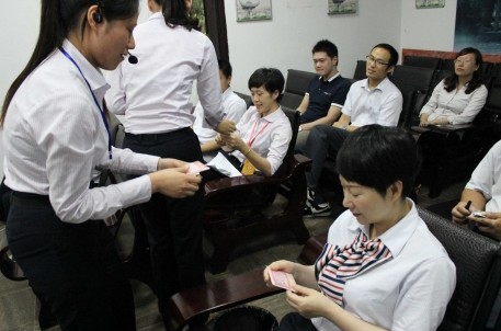 本次的道德講堂主題是社會道德,活動按照“自我反省、唱歌曲、學模范、誦經(jīng)典、發(fā)善心、做善事、向‘德’字鞠躬、送吉祥”的基本流程進行。在活動中,員工們反省自身生活工作中存在的道德問題;學唱了《讓世界充滿愛》這首充滿正能量的歌曲;學習了全國十大責任公民“板凳媽媽”許月華的感人事跡;誦讀《論語》中“見賢思齊焉,見不賢而內自省也。”的經(jīng)典語句。部分員工在觀看“板凳媽媽”的視頻后,感觸頗深,紛紛踴躍發(fā)表自己的感受。活動的最后,主持人和道德宣講員給每一位參與活動的員工都送上了一份吉祥——便利貼。號召員工們在今后的生活工作中,能“吾日三省吾身”,把做的不足之處記錄下來,時刻提醒自己,把“德”字永遠牢記在心中。