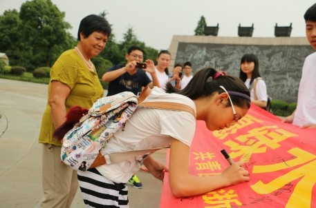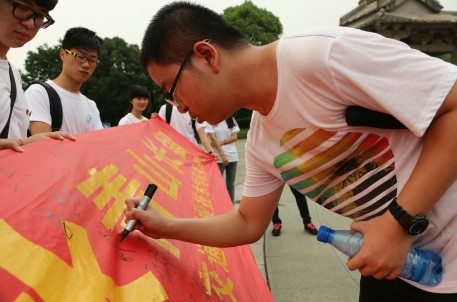 實踐團秉持著“勵志力行”的校訓(xùn)來到會稽山——大禹陵景區(qū),進行他們的“讓藍天白云永駐,愿綠水青山長留”保護河水現(xiàn)場簽名活動,以及對現(xiàn)場游客進行關(guān)于“五水共治”河流問題的采訪。