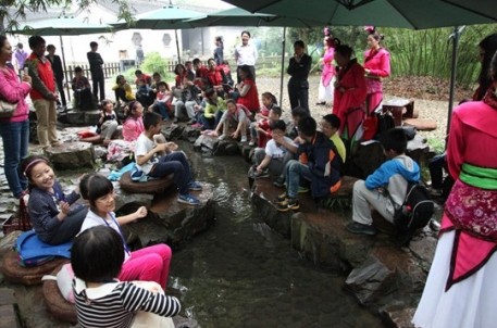活動(dòng)之前通過(guò)紹興博物館官方微信、微博等平臺(tái)進(jìn)行報(bào)名,參與者非常踴躍,最后選取了有書(shū)法基礎(chǔ)的28位小朋友。活動(dòng)由參觀“大越遺珍”展覽,書(shū)法知識(shí)小講堂和實(shí)地走訪蘭亭書(shū)法圣地等環(huán)節(jié)組成,讓參加小朋友們了解書(shū)法的起源和習(xí)書(shū)技巧;近距離欣賞書(shū)法名帖,感受書(shū)法魅力;了解王羲之的書(shū)藝人生,體驗(yàn)“曲水流觴”等互動(dòng)活動(dòng)。