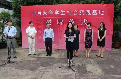 授牌儀式上,姚遠(yuǎn)和葉靜漪分別致辭。姚遠(yuǎn)說(shuō),北京大學(xué)是我國(guó)著名的高等學(xué)府,是國(guó)家培育高素質(zhì)、創(chuàng)造性人才的搖籃,也是科學(xué)研究的前沿和知識(shí)創(chuàng)新的重要基地。此次,紹興蔡元培故居有幸成為北京大學(xué)學(xué)生社會(huì)實(shí)踐基地,是多年來(lái)北京大學(xué)與紹興市開展合作交流的結(jié)果,也是對(duì)我市名人故居工作的肯定。實(shí)踐基地的授牌,將進(jìn)一步促進(jìn)紹興與北大更深入地開展合作與交流,為今后雙方全方位的合作打下堅(jiān)實(shí)的基礎(chǔ)。