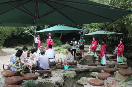 為使端午長假融入更多文化元素,景區(qū)喻革良主任還邀請(qǐng)了部分紹興文藝界人士和廣大游客朋友在景區(qū)書法博物館舉行了《游蘭亭如何欣賞< 蘭亭序>>知識(shí)講座;在景區(qū)里一同尋找各種版本的《蘭亭序》并參與了仿古的曲水流觴活動(dòng)。