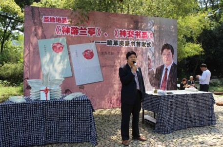 5月1日上午,紹興知名書法家、蘭亭景區(qū)副主任喻革良的新書《神游蘭亭》、《神交書圣》首發(fā)式在蘭亭景區(qū)曲水流觴處隆重舉行。