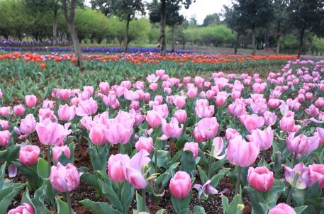 綠樹青山依舊繁茂,紅梅白梅傲氣凌人,梨花初顯盛開(kāi)之勢(shì),郁金香也在花卉園內(nèi)呈現(xiàn)出一片蓄勢(shì)待發(fā)之狀。其中尤以班雅、脆皮瑪麗、純金、瑪雅、法國(guó)之光、邁阿密日落、達(dá)爾文橙色、荷蘭美人弗拉明戈等品種為主的50款郁金香最為焦點(diǎn),配之以大西洋、藍(lán)星、粉珍珠、亞美尼亞、藍(lán)蒂為代表的11款風(fēng)信子及4款洋水仙,并用各色野花點(diǎn)綴其中,勾勒出“行云流水”、“越鄉(xiāng)花谷”、“花田喜事”、“印象紹興”、“大禹疏水”等景觀帶,遠(yuǎn)近交融,高低相攜。花卉園內(nèi)春花綠樹相間,長(zhǎng)廊木亭相配,原來(lái)恐龍園內(nèi)的30余條仿真恐龍情景交融,真實(shí)新穎的蝴蝶谷坐落其中,并點(diǎn)綴以風(fēng)車、木鞋、喜羊羊、“中國(guó)夢(mèng)”等造型小景點(diǎn),成就一片不一樣的花卉天地,打造一座別具一格的會(huì)稽山。