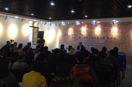 第三十屆中國(guó)蘭亭書法節(jié)系列活動(dòng)之“中國(guó)書法蘭亭大講堂”于4月2日下午兩點(diǎn)在蘭亭景區(qū)瓷硯館開講。本次活動(dòng)由中國(guó)書法家協(xié)會(huì)和紹興市人民政府聯(lián)合主辦,浙江省書法家協(xié)會(huì)和紹興市旅游集團(tuán)承辦,邀請(qǐng)浙江省書法家協(xié)會(huì)主席鮑賢倫主講,講堂內(nèi)容為“方向感與敏銳性——書法創(chuàng)作方法論”。