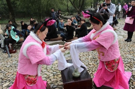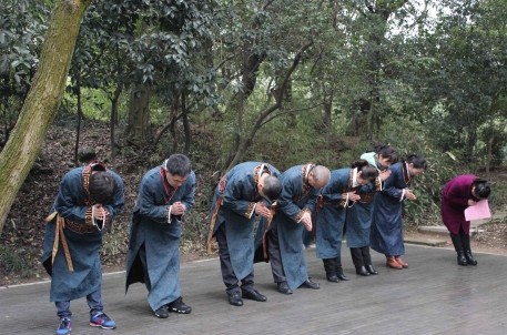 眾人到達(dá)景區(qū)后,徑直來到著名的曲水流觴景點(diǎn),參加新版流觴演藝體驗(yàn)活動。晉圣,沐手,焚香,流觴,小游戲環(huán)節(jié)緊緊相扣,欣賞性和參與性協(xié)調(diào)漸進(jìn)。尤其是新增的酒禮環(huán)節(jié),讓大家一飽眼福:主賓敬酒,少長敬酒,女子之間相互敬酒,侍女優(yōu)雅的演繹贏得了大家的掌聲。落坐來賓也紛紛效仿,行古人之禮,享古人之樂,現(xiàn)場氛圍十分和樂。