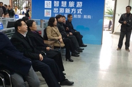 省市領(lǐng)導(dǎo)、省旅游局領(lǐng)導(dǎo)、各地旅游局及景區(qū)的領(lǐng)導(dǎo)和同仁在啟動(dòng)儀式前后分別參觀了紹興市旅游集團(tuán)信息中心,聽取了集團(tuán)在智慧旅游、智慧營銷、智慧服務(wù)三個(gè)方面的工作。工作人員通過中心大屏幕,利用PPT和中央管控系統(tǒng)實(shí)時(shí)演示相結(jié)合的方式,生動(dòng)地向各位領(lǐng)導(dǎo)及嘉賓展示旅游集團(tuán)以微博、微信、微電影為特色的微營銷,具體演示了以大數(shù)據(jù)分析、線上線下服務(wù)一體化的云平臺(tái),展示了我集團(tuán)電子商務(wù)發(fā)展的良好勢頭。領(lǐng)導(dǎo)和嘉賓們在聽取匯報(bào)后,對(duì)我集團(tuán)的智慧旅游方面取得的成果予以了高度評(píng)價(jià)。(茹玉駿)