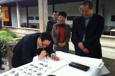 2013年11月13日,原全國(guó)人大副委員長(zhǎng)華建敏及夫人一行在紹興市人民政府市長(zhǎng)俞志宏的陪同下,前來(lái)書(shū)法圣地——蘭亭景區(qū)參觀指導(dǎo)。