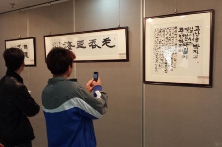 由蘭亭書會和韓國書學(xué)會共同主辦的《群賢畢至——中韓書法名家十人展》日前在魯迅紀(jì)念館臨展廳展出,展出作品由蘭亭書會和韓國書學(xué)會10位書法名家創(chuàng)作,展覽不僅帶來了韓國獨特而優(yōu)秀的文化精神,還使中韓兩種既有淵源而又有差異的傳統(tǒng)文化得到交流碰撞。