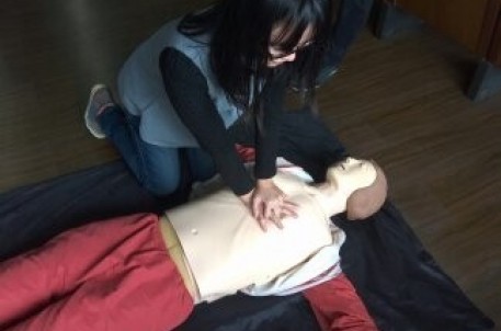 培訓中,專業(yè)培訓師為志愿者現場演示并講解了遭遇突發(fā)事故時的現場急救要領。比如:如何在搶救的黃金時段給生命垂危的人做心肺復蘇,排除氣道異物梗阻等。同時,還介紹了其他的自救互救知識。比如:頭、眼、臂、腿等不同部位的包扎方法及大腿骨折的固定和搬運等。
