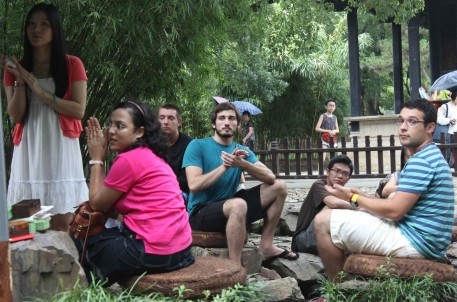 歷時三天的美國留學生蘭亭書法短訓班于今天下午在蘭亭景區(qū)曲水流觴景點輕松自如的氛圍里落下帷幕,這也是美國大學生連續(xù)第十個年頭來蘭亭景區(qū)練習中國書法,體驗中國文化了。