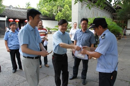 7月17日下午,集團(tuán)公司董事長沈安龍一行來到魯迅故里·沈園景區(qū)慰問一線工作人員。在景區(qū)門口,沈安龍董事長為在崗的員工送上水和毛巾,還關(guān)切地詢問檢票員、講解員的工作情況,感謝他們在高溫酷暑中堅守崗位,,囑咐大家注意防暑降溫,下班后好好休息。