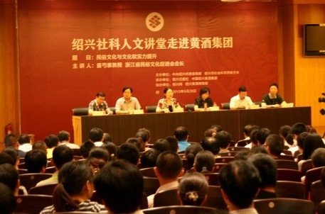 528下午,“紹興社科人文講堂”走進(jìn)紹興黃酒集團(tuán),浙江大學(xué)教授、省民俗文化促進(jìn)會(huì)會(huì)長、省人大教科文衛(wèi)委員會(huì)主任委員童芍素在中國黃酒博物館報(bào)告廳內(nèi)為企業(yè)員工們作了“繁榮民俗文化,提升國家文化軟實(shí)力”的文化講座?,F(xiàn)場(chǎng)座無虛席。