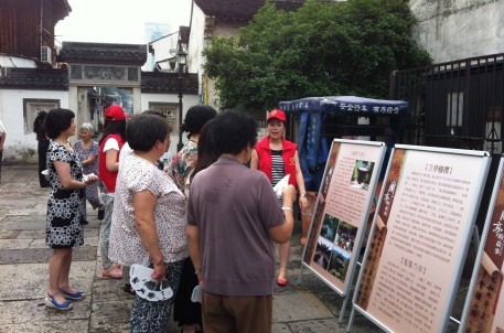 2013年6月8日,是我國第八個文化遺產(chǎn)日,主題為“文化遺產(chǎn)與全面小康”。紹興博物館圍繞主題,開展“展覽進(jìn)社區(qū)”活動。博物館志愿者繼北海社區(qū)后,第二次送展覽進(jìn)社區(qū)。志愿者們來到位于倉橋直街歷史街區(qū)的越都社區(qū),懸掛宣傳橫幅,分發(fā)宣傳資料,宣傳文化遺產(chǎn)的保護(hù)與傳承,同時把《蘭亭的故事》展板送進(jìn)社區(qū),使社區(qū)居民足不出戶就更看到博物館展覽。同進(jìn),博物館還邀請社區(qū)居民到館免費(fèi)觀看紹興歷史宣傳片—4D電影《越魂》,讓居民更加直觀的了解紹興歷史文化。