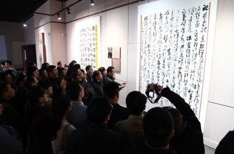 4月25日下午,浙江省書法家協(xié)會2013年書法篆刻創(chuàng)作骨干研修班的近百名學員,在老師的帶領下來紹興博物館觀摩“中國書法蘭亭獎”獲獎作品展。據(jù)悉,此次現(xiàn)場課是浙江省書法家協(xié)會為本期研修班特別安排的,旨在通過現(xiàn)場近距離感受全國書法名家高手們的作品,讓學員們對書法藝術有更真切直觀的感悟。