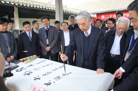2013年4月12日上午,第二十九屆中國蘭亭書法節(jié)在蘭亭景區(qū)王右軍祠隆重開幕。十一屆全國人大常委會副委員長周鐵農(nóng),中國文聯(lián)黨組副書記、副主席覃志剛,省文聯(lián)黨組書記田宇原,中國書協(xié)主席張海,第四屆中國書法蘭亭獎終身成就獎獲得者陳方既、劉藝及蘭亭獎獲得者,省文聯(lián)黨組成員、書記處書記高克明,省書協(xié)主席鮑賢倫,市領(lǐng)導(dǎo)錢建民、譚志桂、陳長興、尹永杰、魏偉、傅祖民、吳曉東、馮建榮,市老領(lǐng)導(dǎo)、市旅游協(xié)會會長顧秋麟,市老領(lǐng)導(dǎo)、市書法家協(xié)會主席袁長壽等和自全國30個省市(自治區(qū))書協(xié)領(lǐng)導(dǎo)、10個書協(xié)專業(yè)協(xié)會領(lǐng)導(dǎo),以及海內(nèi)外書法界、文化界、旅游界、新聞界共300多位嘉賓出席開幕式。