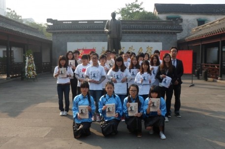 11月2日上午,紹興越秀外國語學院朝鮮語1106班的學生在周恩來紀念廣場舉行“學習總理精神,爭創(chuàng)‘周恩來班’”系列活動。(名人故居 李娜)