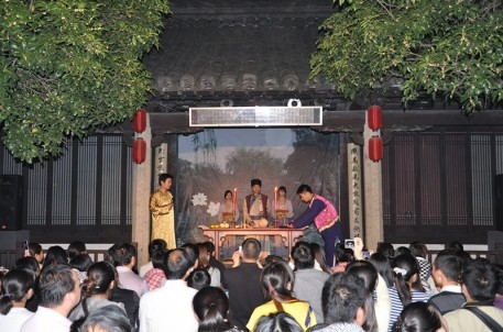 農歷八月十五中秋是我國重要的傳統(tǒng)節(jié)日之一,據宋代筆記體散記《東京夢華錄》記載,中秋是世俗歡愉的節(jié)日。宋代的中秋夜是不眠之夜,夜市通宵營業(yè),玩月游人,達旦不絕。為了重現(xiàn)宋代中秋盛況,弘揚傳統(tǒng)文化,賦予中秋節(jié)更多新的內涵,在中秋小長假期間,景區(qū)經過精心編排,在原有堂會表演的基礎上推出了一場別具特色的中秋祭月儀式。