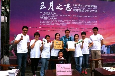 相繼魯迅故里廣場的另一邊是為5·19旅游日舉辦的“今天你@我了嗎?古城小編在你身邊”的各大景區(qū)微博小編與粉絲的見面會。紹興古城13個小編齊聚一堂,這是一場粉絲和小編從網(wǎng)絡(luò)走到現(xiàn)實的見面會。在前期小編準(zhǔn)備了各項特色活動和回饋粉絲的超值大禮包,禮包中涵蓋紹興各大景區(qū)的限量版寶貝,具有極大地收藏價值?;顒赢?dāng)天,有一對父子是古城的鐵桿粉絲,幸運地領(lǐng)走了超值大獎品。