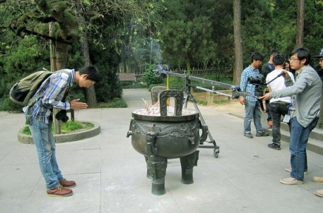 4月6日下午,微電影《櫻為愛情2》在會稽山大禹陵景區(qū)內(nèi)進(jìn)行了拍攝。這一部分的主要內(nèi)容是男主角孔乙己孤身一人來到大禹陵,為他失憶女友陸昔祈福,并在景區(qū)內(nèi)拍攝了一些照片,希望陸昔能夠喜歡。整個下午,景區(qū)講解員都進(jìn)行了全程陪同,為拍攝組提供了很多便利之處。在拍攝期間,也看到了作為演員的辛苦,一個動作,一個表情,導(dǎo)演都會要求精益求精,“不符合,重來”,這似乎成了家常便飯,往往一句很簡單的臺詞,因為表情不到位,就得重新再來一次。