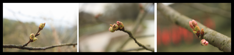 期盼抽芽:每個人都在翹首等待著,日日在櫻花林仔細搜索,觀察櫻花有沒有抽芽,幾天后,