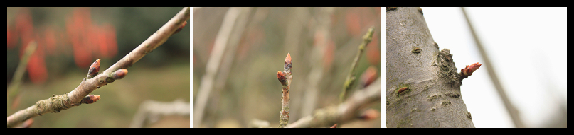 嫩紅色的小芽在雨水的滋潤下陸陸續(xù)續(xù)的從樹枝間抽出來了,讓我們欣喜萬分。