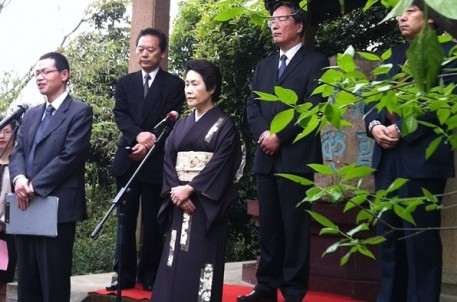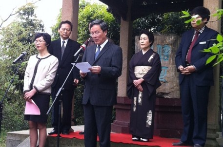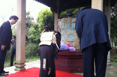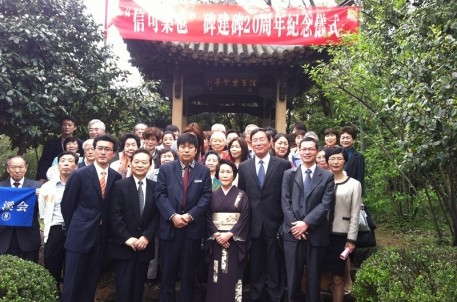 4月15日上午,日本天溪會會長南鶴溪女士率40位團員來到書法圣地蘭亭舉行“信可樂也”碑建碑20周年紀念儀式。市友協(xié)執(zhí)行副會長、市外僑辦主任謝振江,省友協(xié)辦副主任吳曉東,市外僑辦副主任、市友協(xié)秘書長盛伯均,蘭亭景區(qū)副主任喻革良等人參加。儀式上,喻革良先生、南鶴溪女士和盛伯鈞主任先后致辭。喻革良和南鶴溪作為“信可樂也”碑建碑二十年歷程的直接見證者,更是深情回憶了蘭亭和天溪會之間的友好往來及建碑歷史,雙方表示此碑已是蘭亭不可或缺的一部分,是中日友好的見證和橋梁,希望書法天長地久,友誼天長地久。最后,南鶴溪女士向“信可樂也”碑獻上鮮花,并深深三鞠躬。活動結(jié)束后,所有人員在碑亭前合影留念。